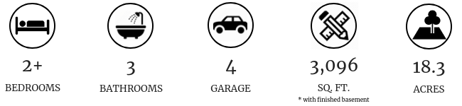 This is the ideal homesite for those looking for a little privacy. Located at the end of a long, paved driveway, you find a log home tucked into a small clearing of trees. Most of the 18 acres are wooded and with the home's large windows, decks, and patios looking out to the trees, it will feel like your own slice of heaven.