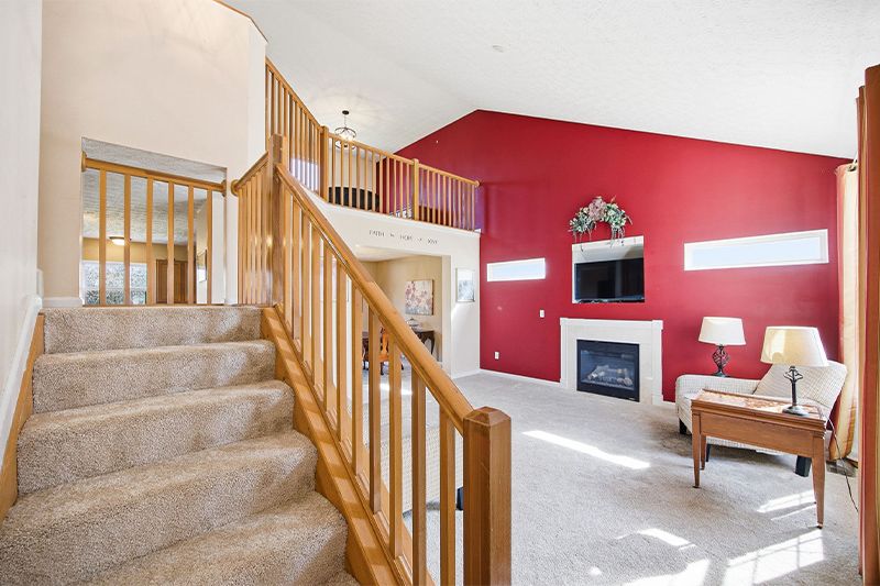 The first thing this home does is make you look up. The vaulted ceilings in the great room stretch past the gas fireplace and up to the loft railing, and the effect is immediate... 1,800 square feet suddenly feels like a lot more. It's not just height for the sake of it. The windows pull in natural light from two directions, and the openness between the great room, dining area, and staircase creates a main level that breathes.