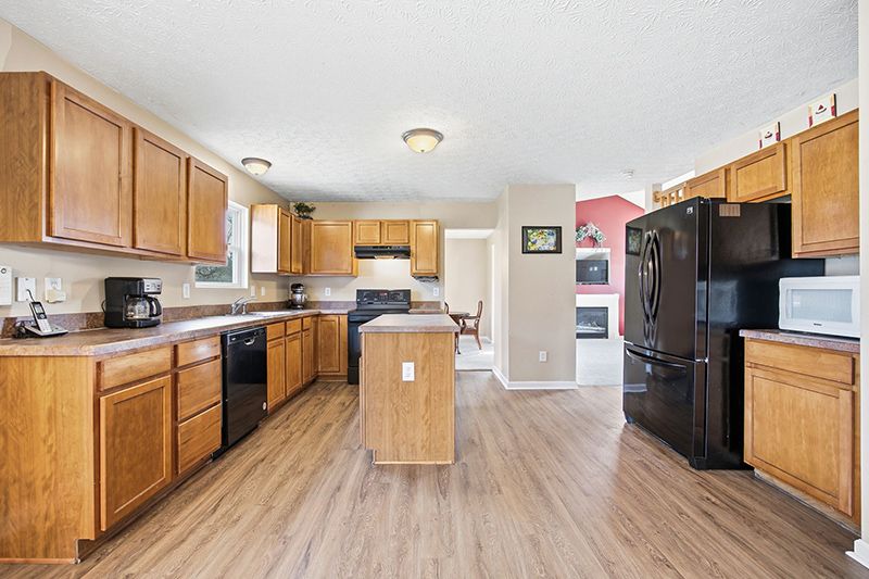 Nobody's bumping into anyone in here. Prep island in the middle, counter space on three sides, and enough separation from the great room that it still feels like its own room. Brand new LVP runs into the breakfast nook where the morning light takes over. This is the room everyone ends up in anyway, and for once, there's actually space for all of them.