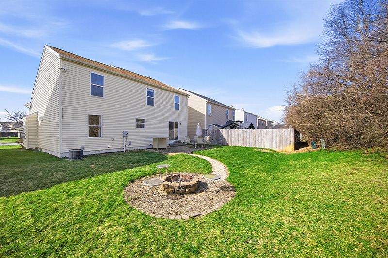 Out back, you'll find a paver patio and a fire pit that sit against a tree line, making you forget how close the neighbors are. Summer evenings end up here, and they usually last longer than you planned.