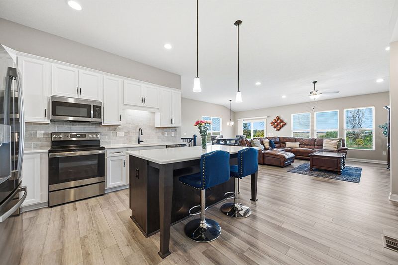 Mornings feel unhurried in the kitchen, coffee steaming on the island while ripples move across the water. Evenings drift to the patio, where a chair turns toward the pond, and small talk turns into real conversation. Indoors, the living room keeps everyone within reach for game night, a favorite movie, or a quiet read when the house finally goes still.